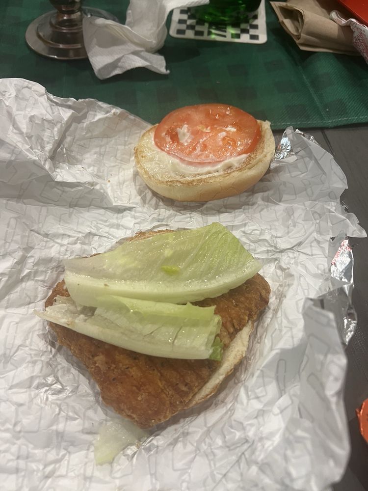 Juicy white meat, lightly breaded and seasoned, topped with crisp lettuce, and mayo. More than delicious, and just the right size.